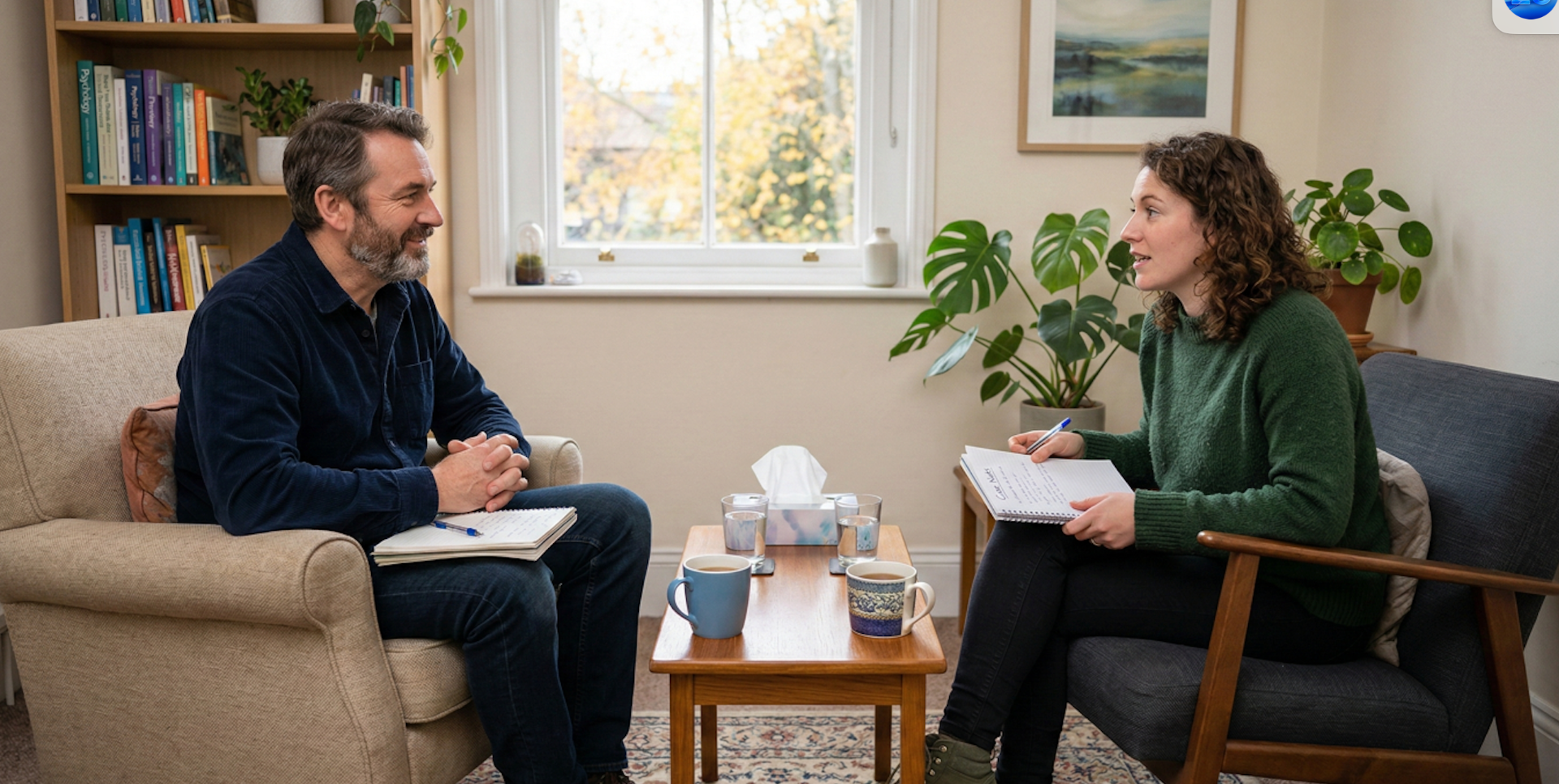 - Process (10–15 mins): Issues relating to therapeutic relationship, patterns of behaviour, thoughts, emotions, your responses.